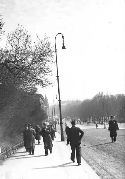 Bilde fra Slottsbakken mot Karl Johans gate, Oslo.