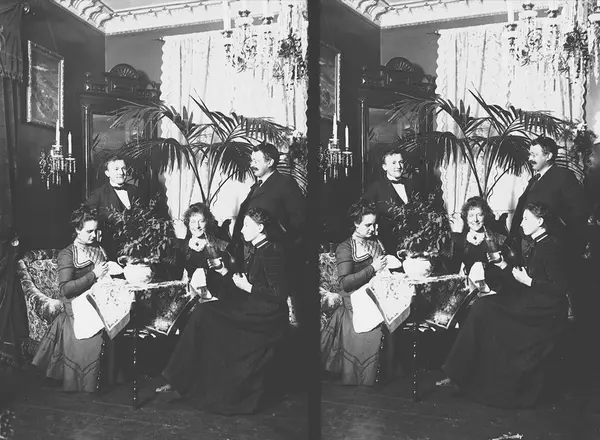 Fra serie etter iseksportør Axel Quinsgaard Wiborg, bosatt i Oslo og senere Digerud, Frogn. Han var tidlig en ivrig amatørfotograf som omkring 1898 skaffet seg et 13x18 plateapparat med utskiftbart objektiv for stereo, samt utstyr for magnesiumopptak, framkalllings- og kopieringsutstyr etc. Ved sin død 1944 etterlot han seg ca. 200 negativer, mange tatt i tiden 1901-1906. Motivene er mest knyttet til eget familieliv, i tillegg til motiver av stor generell kulturhistorisk verdi. Endel av bildene er stereoskopfotografier.