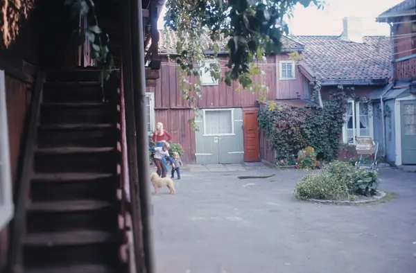 Bakgårds-idyll. Bildet er antagelig tatt i forbindelse med en artikkel om byfornyelse på Grünerløkka i Oslo. Fotografert for Bonytt 1982.