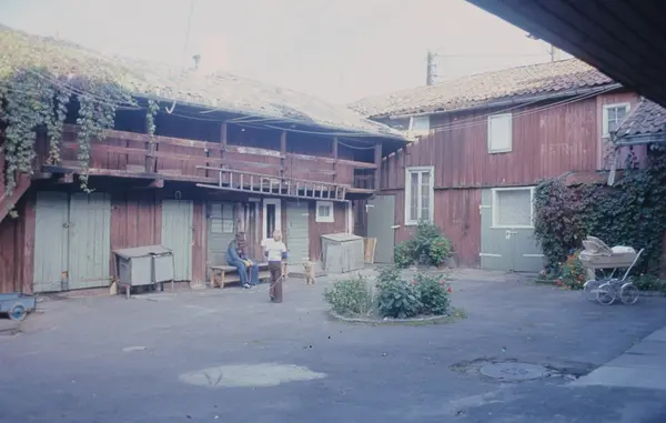 Bakgårds-idyll. Bildet er antagelig tatt i forbindelse med en artikkel om byfornyelse på Grünerløkka i Oslo. Fotografert for Bonytt 1982.