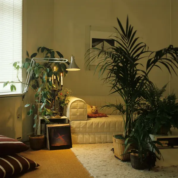 Fra stuen i leilighet i gammel bygård på Bislett i Oslo. Leiligheten er innredet av grafisk designer Enzo Finger. Fotografert for Bonytt 1983.