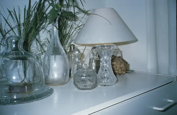 Liten gruppe av pyntegjenstander i leilighet i gammel bygård på Bislet i Oslo, innredet av grafisk designer Enzo Finger. Fotografert for Bonytt 1983.