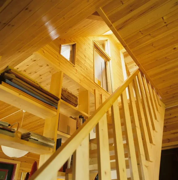 Trapp fra 2. etasje til loft i enebolig, Nordstrand, Oslo. Illustrasjonsbilde fra Bonytt 1983.