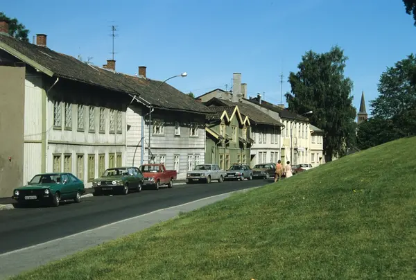 Gammel trehusbebyggelse, Opplandsgata, Vålerenga, Oslo. Illustrasjonsbilde fra Bonytt 1983.