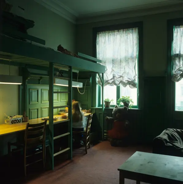 Barnerom i gammel leilighet på Frogner i Oslo. Lekseplass under køyeseng. Illustrasjonsbilde for Bonytt 1983.