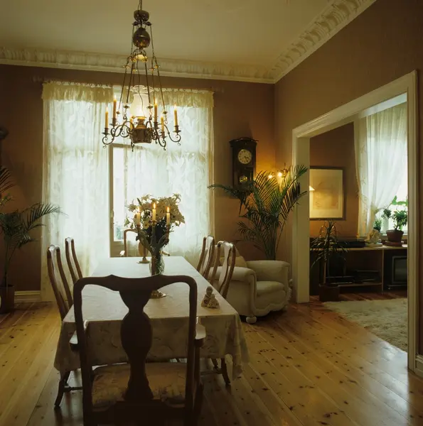 Større døråpning gir bedre romfølelse i stue og spisestue i gammel leilighet på Frogner i Oslo. Illustrasjonsbilde for Bonytt 1983.