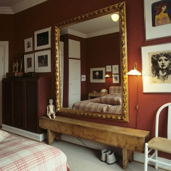 Soverom i eilighet på Frogner i Oslo. "Skapet" til venstre rommer radiatoren. Illustrasjonsbilde for Bonytt 1983.