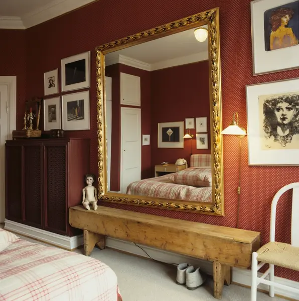 Soverom i leilighet på Frogner i Oslo. "Skapet" til venstre rommer radiatoren. Illustrasjonsbilde for Bonytt 1983.