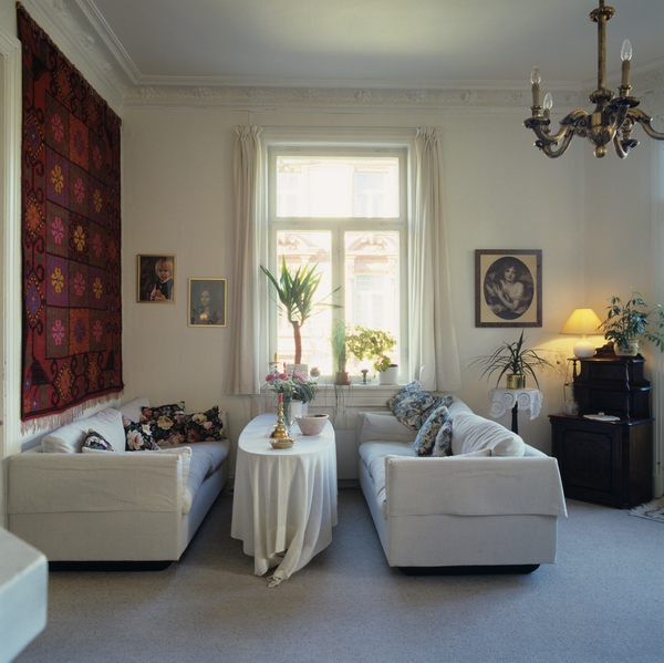 Stue i nyoppusset leilighet på Frogner i Oslo. Illustrasjonsbilde fra Bonytt 1986.