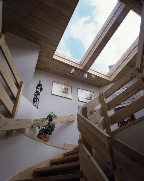 På toppen av bygård i Oslo, trappeløpet. Illustrasjonsbilde fra Nye Bonytt 1989.