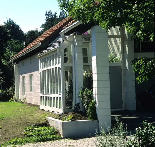 Hus sett fra siden med glasskarnapp. Illustrasjonsbilde fra Nye Bonytt 1989.