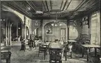 Interiør, hallen, Holmenkollen Sanatorium, Oslo. Bygget 1894(1891?) av arkitekt Balthazar Lange. Eier og byggherre Dr. Holm(Ingebrigt Christian Lund Holm). Fra 1914 betegnet som turisthotell etterat det opprinnelige turisthotellet brant for 2. gang uten å bli gjenreist. Ominnredet og påbygd 1982 (Holmenkollen Park Hotel). Skrevet 1913.