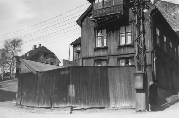 Fra trehusmiljøet på Enerhaugen, Oslo. Gateparti med boliger.