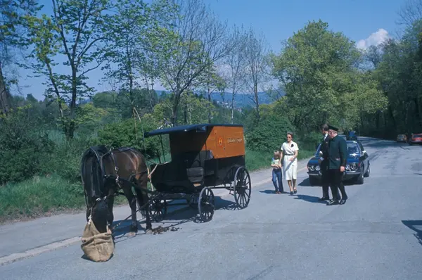J. H. Andresen med familie kjører hest og vogn til Norsk Folkemuseum på Bygdøy.