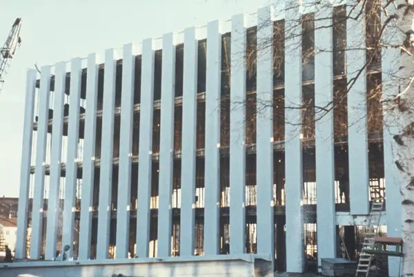 Konstruksjon av administrasjonsbygg på Hovin. Tiedemanns Tobaksfabrik.