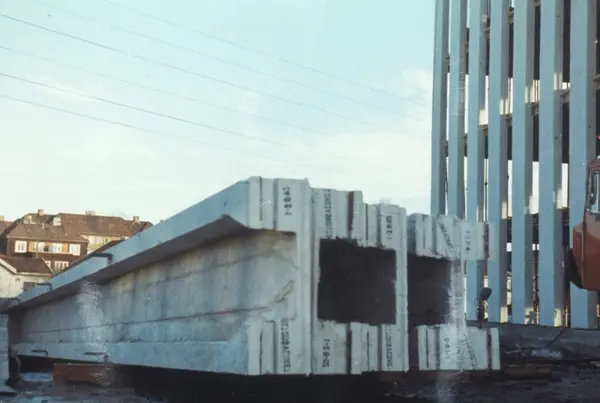 Konstruksjon av administrasjonsbygg på Hovin. Tiedemanns Tobaksfabrik.