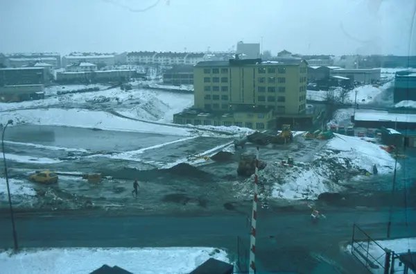 Byggeplass. Konstruksjon av Tiedemanns nye råtobakklager på Hovin i 1978.