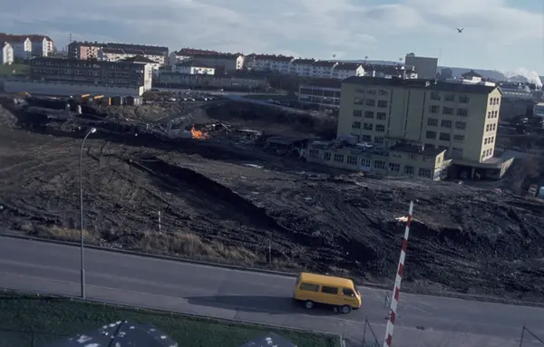 Byggeplass. Konstruksjon av Tiedemanns nye råtobakklager på Hovin i 1978.