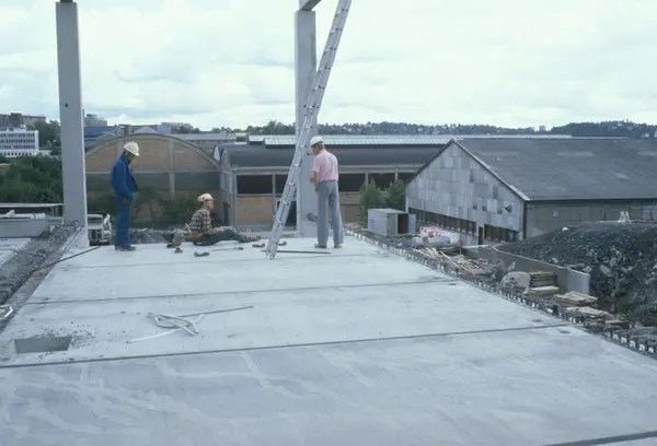 Byggeplass. Utvidelse av Tiedemanns fabrikk på Hovin i 1982-83.