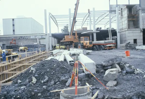 Byggeplass. Utvidelse av Tiedemanns fabrikk på Hovin i 1982-83.