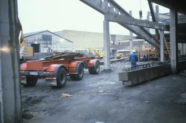 Byggeplass. Utvidelse av Tiedemanns fabrikk på Hovin i 1982-83.