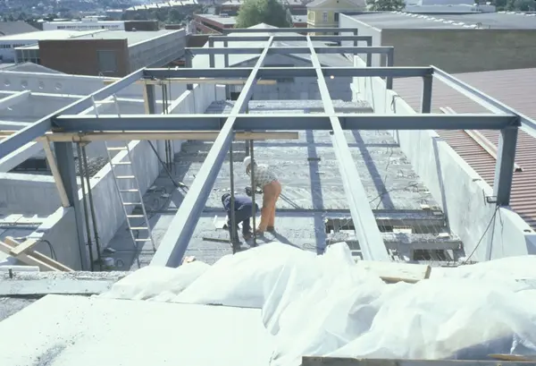 Byggeplass. Utvidelse av Tiedemanns fabrikk på Hovin i 1982-83.
