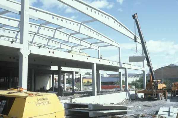 Byggeplass. Utvidelse av Tiedemanns fabrikk på Hovin i 1982-83.