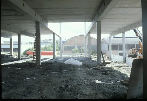 Byggeplass. Utvidelse av Tiedemanns fabrikk på Hovin i 1982-83.