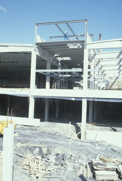 Byggeplass. Utvidelse av Tiedemanns fabrikk på Hovin i 1982-83.
