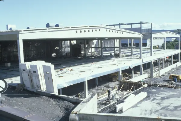 Byggeplass. Utvidelse av Tiedemanns fabrikk på Hovin i 1982-83.