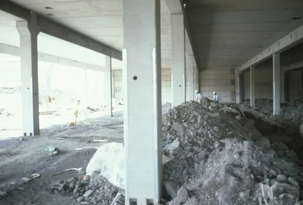 Byggeplass. Utvidelse av Tiedemanns fabrikk på Hovin i 1982-83.