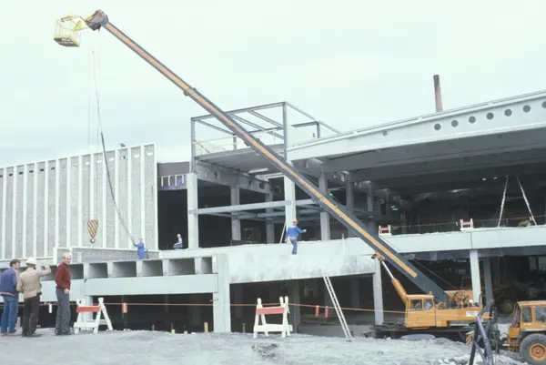 Byggeplass. Utvidelse av Tiedemanns fabrikk på Hovin i 1982-83.