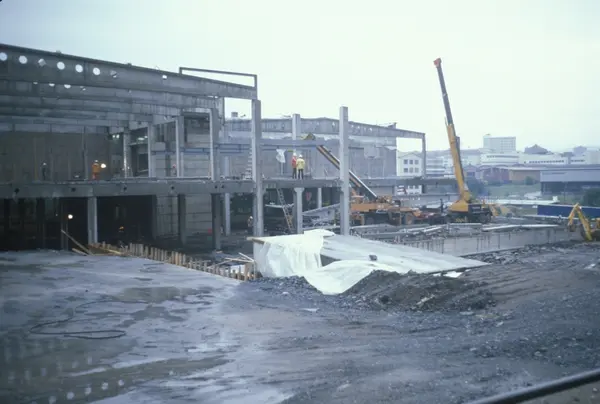 Byggeplass. Utvidelse av Tiedemanns fabrikk på Hovin i 1982-83.