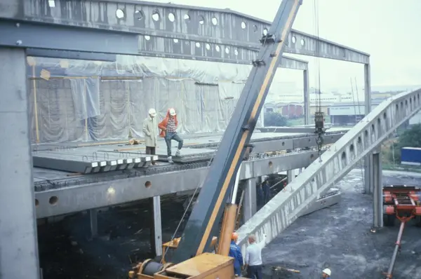 Byggeplass. Utvidelse av Tiedemanns fabrikk på Hovin i 1982-83.
