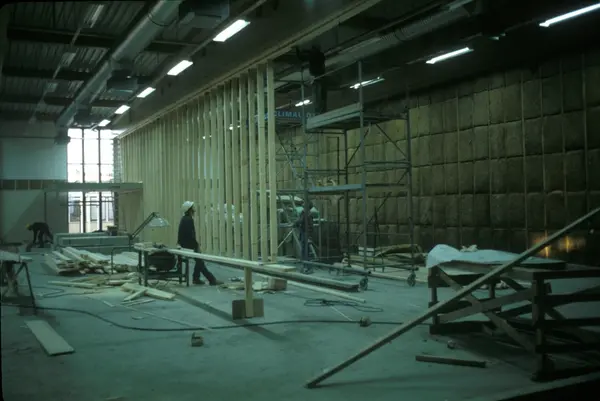 Byggeplass. Utvidelse av Tiedemanns fabrikk på Hovin i 1982-83.