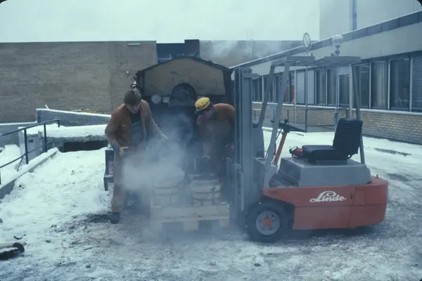 Byggeplass. Utvidelse av Tiedemanns fabrikk på Hovin i 1982-83.