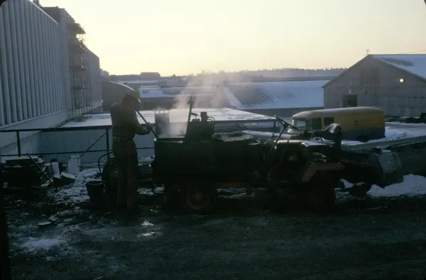 Byggeplass. Utvidelse av Tiedemanns fabrikk på Hovin i 1982-83.