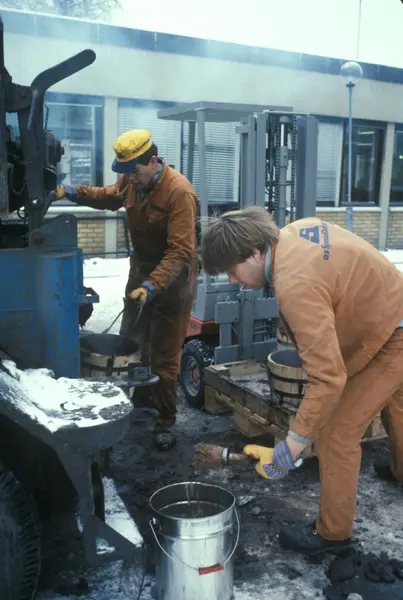 Byggeplass. Utvidelse av Tiedemanns fabrikk på Hovin i 1982-83.