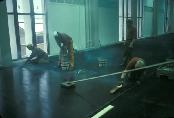 Byggeplass. Utvidelse av Tiedemanns fabrikk på Hovin i 1982-83.