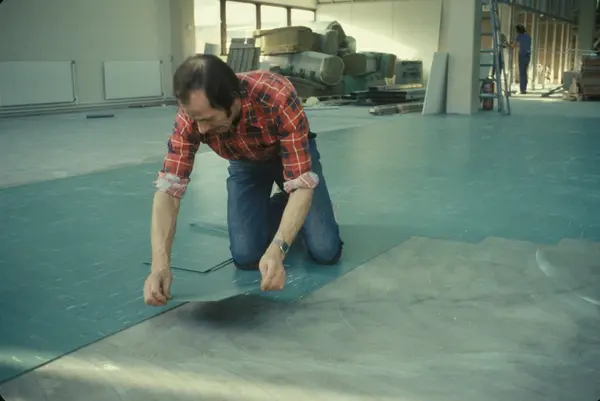 Byggeplass. Utvidelse av Tiedemanns fabrikk på Hovin i 1982-83.