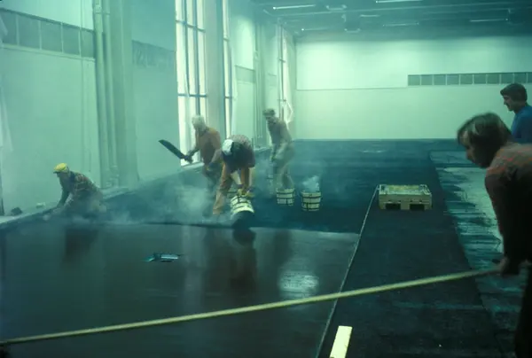 Byggeplass. Utvidelse av Tiedemanns fabrikk på Hovin i 1982-83.