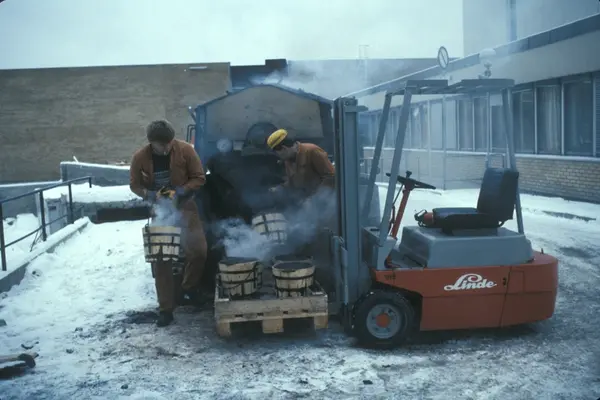 Byggeplass. Utvidelse av Tiedemanns fabrikk på Hovin i 1982-83.