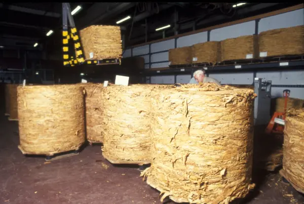 Tobakk klar til første prosess hos Tiedemanns Tobaksfabrik.
