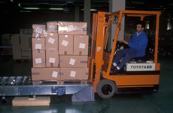 Fabrikkinteriør. Pakkeavdeling. Produksjon av tobakk hos Tiedemanns Tobaksfabrik.