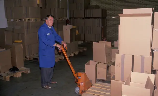 Fabrikkinteriør. Pakkeavdeling. Produksjon av tobakk hos Tiedemanns Tobaksfabrik.