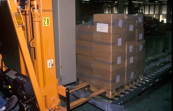 Fabrikkinteriør. Pakkeavdeling. Produksjon av tobakk hos Tiedemanns Tobaksfabrik.