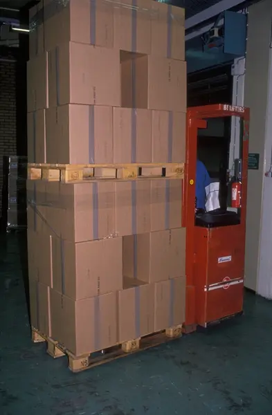 Fabrikkinteriør. Pakkeavdeling. Produksjon av tobakk hos Tiedemanns Tobaksfabrik.