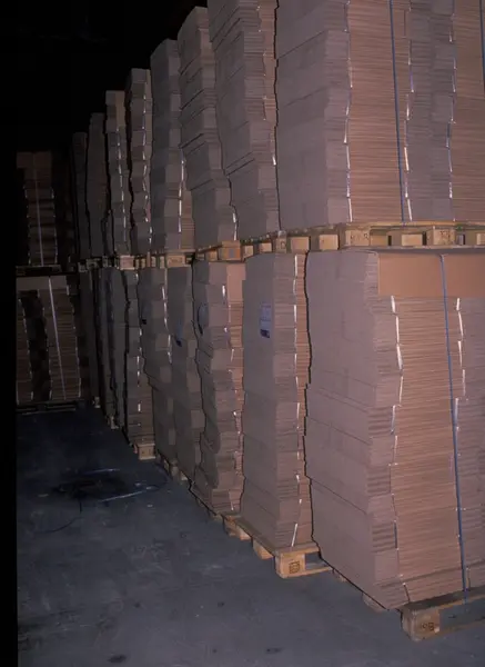 Fabrikkinteriør. Pakkeavdeling. Produksjon av tobakk hos Tiedemanns Tobaksfabrik.
