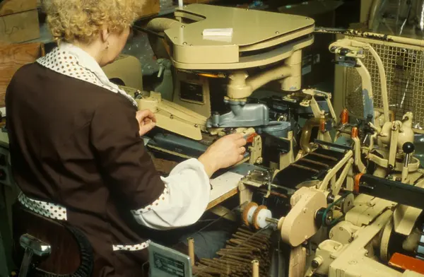 Fabrikkinteriør. Produksjon av tobakk hos Tiedemanns Tobaksfabrik på Hovin.