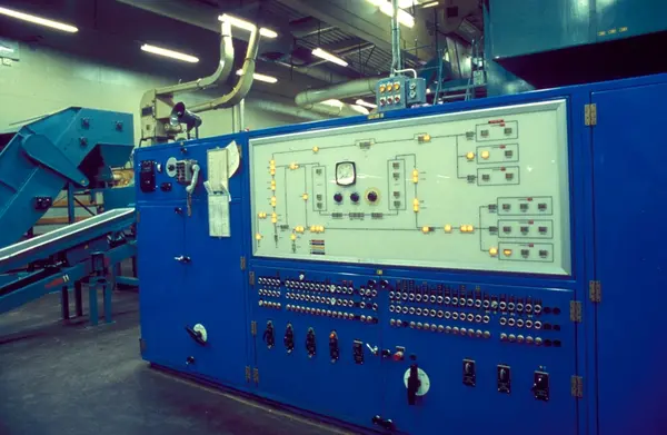 Fabrikkinteriør. Produksjon av sigaretter hos Tiedemanns Tobaksfabrik på Hovin. Fra bildeserie brukt i forbindelse med Tiedemanns tobakkskurs.